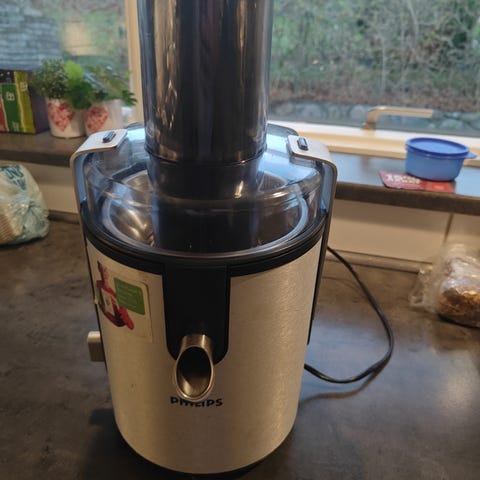 Effektiv saftpresser til daglig frisk juiceLav lækker, hjemmelavet juice på ingen tid med Philips Viva Collection HR1832. Den kompakte saftpresser udnytter frugt og grønt effektivt, så du kan presse op til 1,5 l juice ad gangen uden at tømme frugtkødsbeholderen. Med den integrerede tud kan du servere direkte i dit eget glas (op til 12 cm), og antislipfødder holder maskinen stabil på køkkenbordet.Nem rengøring med QuickCleanRengøringen er enkel takket være QuickClean-teknologi: en poleret si, indbygget frugtkødsbeholder og glatte, afrundede overflader, der kan skylles hurtigt. Aftagelige dele tåler opvaskemaskine, så du nemt er klar til næste presning.Kompakt design - stor kapacitetJuiceren fylder minimalt og kan blive stående fremme. Det gennemsigtige låg og frugtkødsbeholderen gør det let at følge processen og se, når det er tid til at tømme. En enkel hastighedsindstilling gør betjeningen ligetil.Kompakt juicer med stor kapacitet: pres op til 1,5 l på én gangQuickClean-si og glatte overflader for rengøring på ca. 1 minutDirekte servering i glas via integreret dryp-stoptudGennemsigtigt låg og frugtkødsbeholder for fuldt overblikStabil og enkel i brug med antislipfødder og 1 hastighedProdukttype: SaftpresserKapacitet, juice: 1,5 lFrugtkødsbeholder: 1,0 lEffekt: 400 WHastigheder: 1 forudindstillingFarve: SortMateriale: Plastik (inkl. ABS og SAN)Maskinopvask: Aftagelige deleUdvendigt: Antislipfødder, transparent låg, dryp-stoptudSikkerhed: SikkerhedsklemmerInkluderet tilbehør: Juiceglas 0,5 lLedningslængde: 0,8 m, ledningsopbevaringSpænding: 220–240 V / 50–60 HzMål: H 42 cm × B 23 cm × D 23 cm