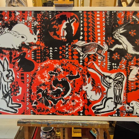Akryl, maleri på papir, Ramme størrelse 108x78.
