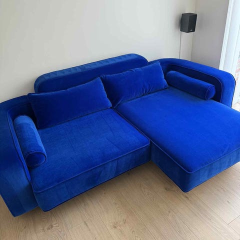 Twin sofa 230cm i boucle warm grey med vendbar chaiselong så du selv bestemmer hvilken side du vil have den den. Den er helt ny.