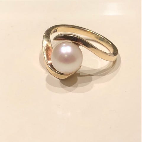 18 karat guld ring med Koral perler på. Den er 58 i størrelse. Den er meget flotte