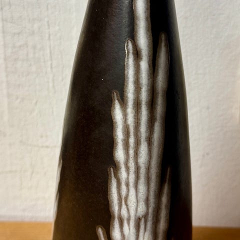 Flot og fejlfri stor Søholm keramik vase i meget smuk glasur gyldne rifler -blå-brun glasur