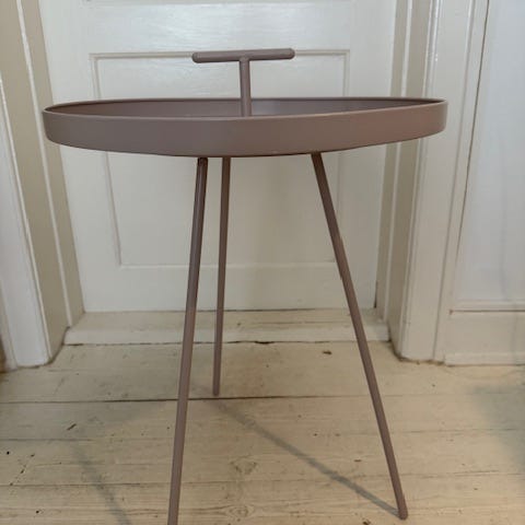 Ældre (+80 år) snedker cafebord. Står med brugspor på bordpladen. Kan slippes ned og lakeres påny. Bordben kan skrues af (har dog aldrig været forsøgt). Står til afhentning i København S. Sendes og transporteres ikke - skal afhentes. Mål diameter 86,50 cm og 67,50 cm høj.