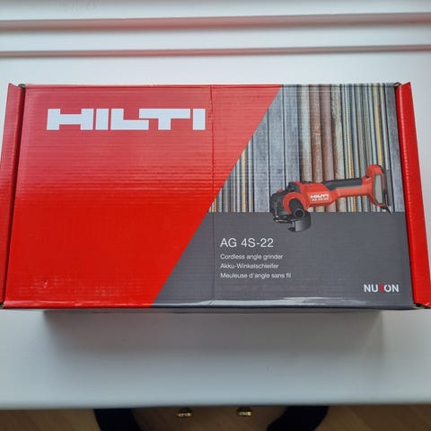Hilti vinkelsliber leveres med opbevaringskasse og tilbehør. Værktøjet er velegnet til slibning og skæring af forskellige materialer. Kablet er integreret, og kassen er designet til nem transport og opbevaring.