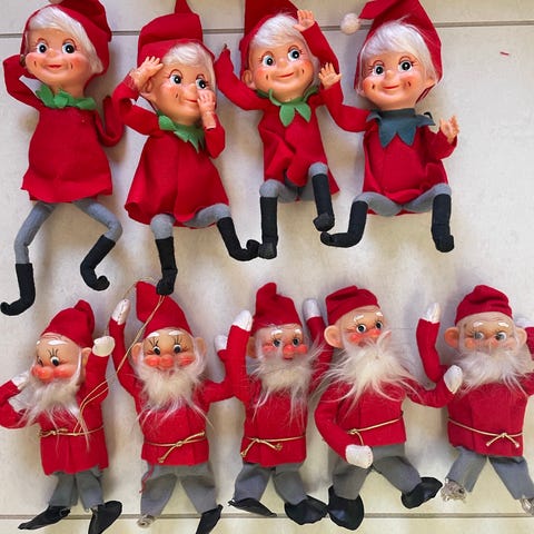 Gamle retronisser med porcelænshoveder fra 1950-60 erne sælges samlet. Trænger til restaurering specielt nissefar.