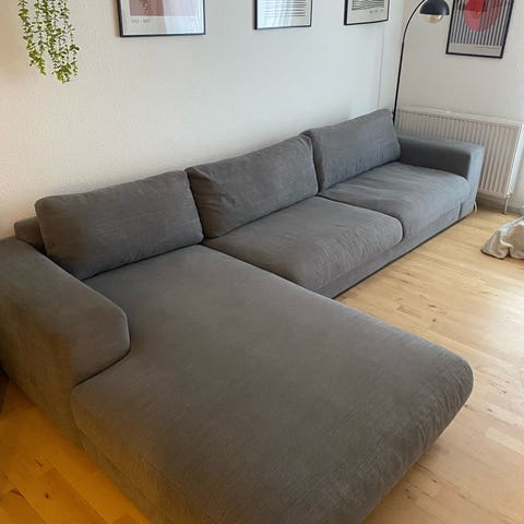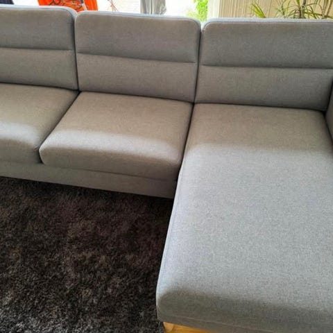 Pæn sofa i beige farve, fra ikke ryger hjem og uden dyr.