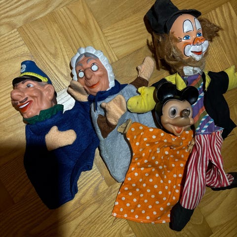 5 stk. fine ny hånddukker, Minnie, Pluto, Anders And, Mickey Mouse og Fedtmule