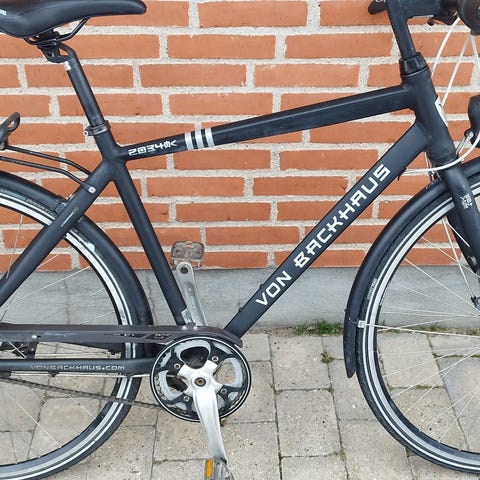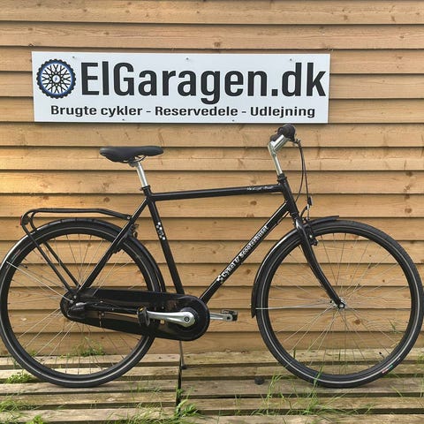 En herrecykel, som har fået ny kæde, tandhjul, kabler og gearskifter. Alt virker og cyklen er fuld køreklar.