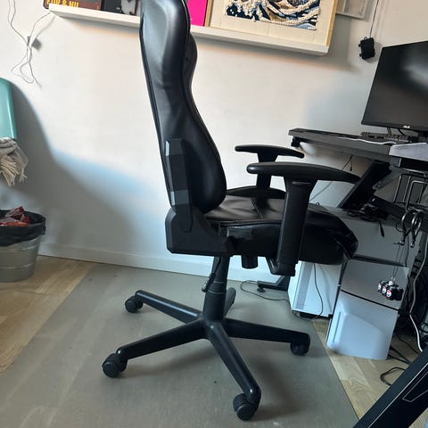 good quality, without the pillows and has one small hole on the right side of the chair. Original price was 1500DKK.