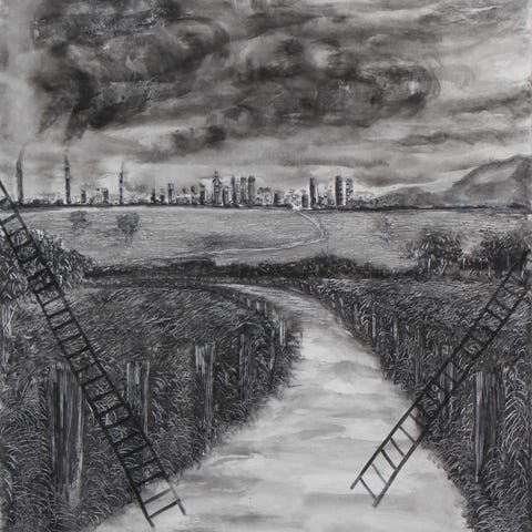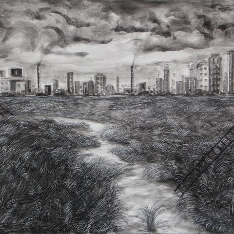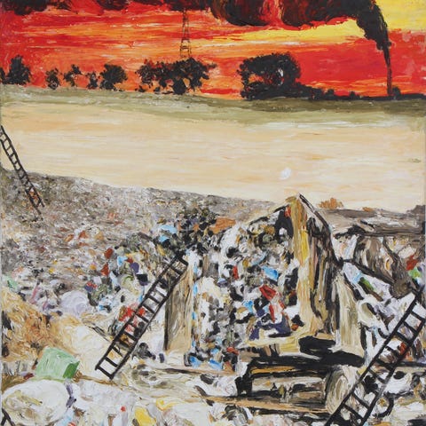 Det er olie / akvarel / kridt (mixed media) på papir.