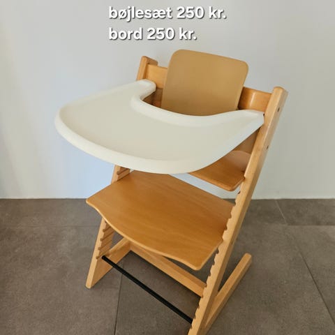 Newborn og plastikbøjlesæt passer på denne stol.