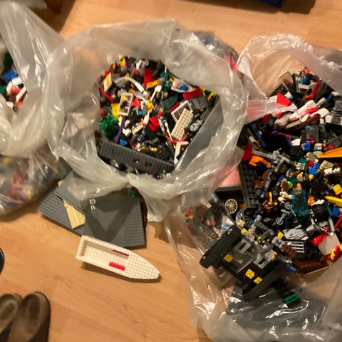 Der er et stort mix af klodser i mange farver og typer – plader, klodser, hjul m.m. En del Politi-relaterede klodser.