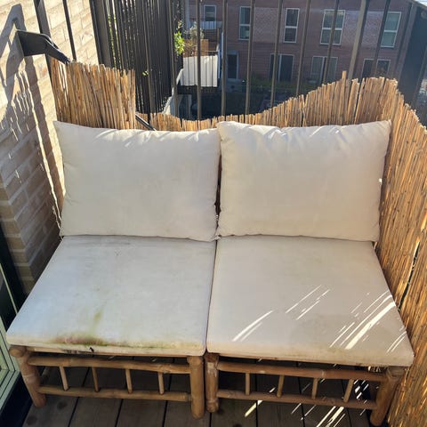 Udendørs hynde sæt til lounge sofa i grå farve. Sættet består af en sædehynde og en rygpude med knapdetaljer, designet til komfort og velegnet til udendørs brug.