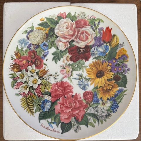 Hutschenreuther, Abt. Paul Müller Selb, Tyskland, 1900-tallet. Porcelænsterrin dekoreret med blomstermotiv i lilla og grønne nuancer. Skålen har en rund form med to sidegreb og et låg med en dekorativ top. Velegnet til blomsterdekorationer 🪻