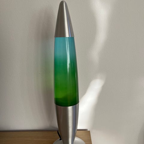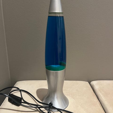 Lavalampe, der lyser blåt. Et svagt lys, men super hyggeligt.