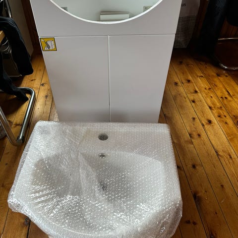 Helt ny hvid porcelænvask der er 121 x 46 cm.