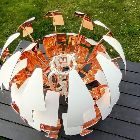 IKEA's prisbelønnede loftspendel. Hængt i ikke-ryger hjem. Lampen har hvid mat inder- og yderside samt tyrkis arme og giver derfor et blidere og mindre "shiny" lys end de øvrige pendler i samme serie. Nypris 700 kr så god besparelse på at købe brugt.