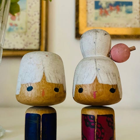 Bedsteforældre kokeshi par symboliserer et langt og harmonisk ægteskab. At være sammen til håret bliver hvidt