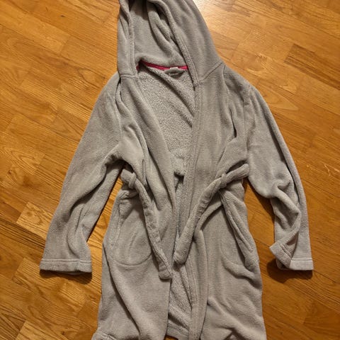 Name it Fleece Badekåbe i størrelse 134 til piger. Badekåben er brun og lavet af fleece materiale, hvilket giver varme og komfort. Den har hætte, lommer foran og bælte i taljen for justerbar pasform. (Brugt få gange)
