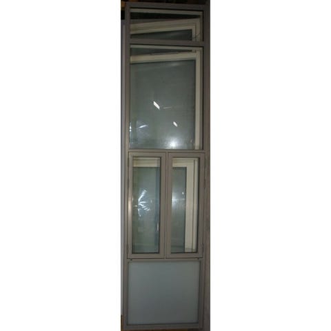 Vinduesparti i træ/alu med drejekip funktion i det store øverste felt, Åbner indad, mangler greb
