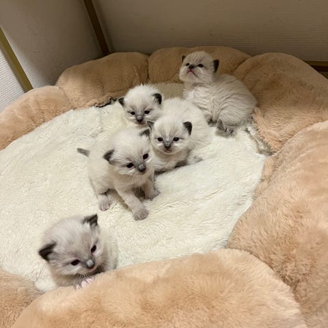 Mor-Tippie har en lidt speciel historie og baggrund. Killingerne er derfor 1/16 Hellig Birma og resten Ragdoll.