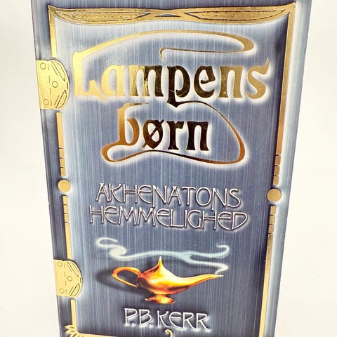 P.B. Kerr Lampens børn bog med titlen 'Kobrakongen fra Kathmandu'. Bogens omslag er rødt med illustration af en kobra. Teksten på bagsiden beskriver bogens temaer og hovedpersoner.