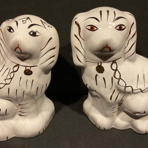 Keramik hundefigurer sæt med to hvide hunde