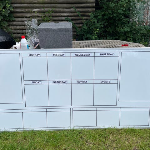 Hjørnerne mangler som man kan se på billederne men overordnet ellers pænt. Det sorte tape kan fjernes. Vi har brugt den som ugeplanner.