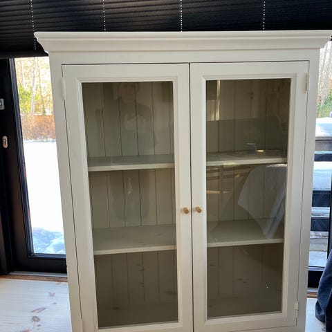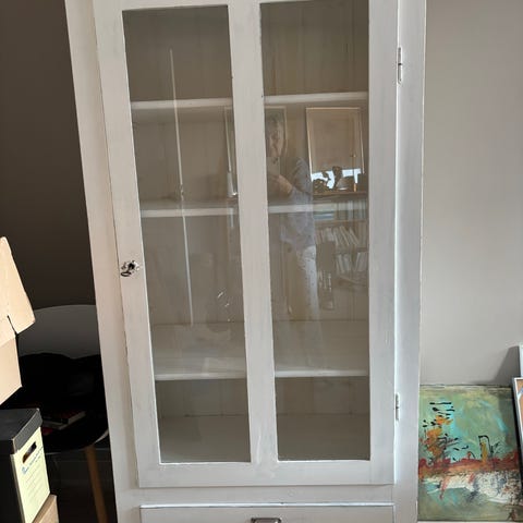 Hvidmalet vitrineskab