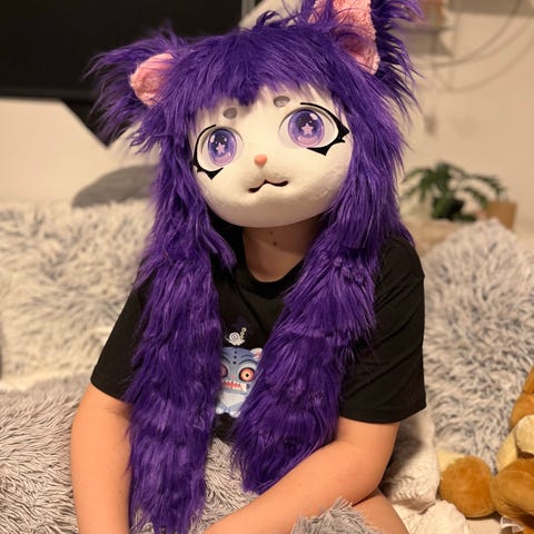 Unik fursuit / therian / furry kattemaske. Aldrig brugt. Med tre ægte fjer fra skovskade og bøjelige ører. Du er velkommen til at komme og prøve den. Byd. Det er også muligt at købe furry / therian masker efter eget ønske på bestilling. Se også andre masker til salg på profilen.
