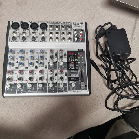 Behringer Eurorack UB502 mixer med 5 kanaler, hovedtelefonudgang, mikrofonindgange og tape in/out.