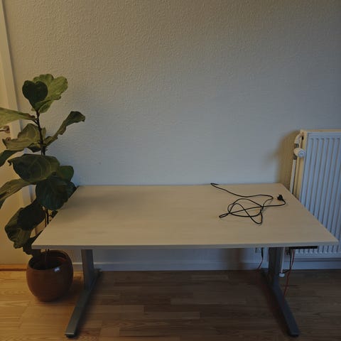 FLEXA elektrisk skrivebord med højdejustering og vippefunktion – det perfekte skrivebord. Det sikrer en sund siddeposition ved at justeres i højde (54-76 cm) og vippe bordpladen op til 45°. Man opnår dermed en optimal og afbalanceret kropsholdning under arbejdet. Bordet er i rigtig fin stand, og den eneste brugsspor er naturligt slid på lakeringen.