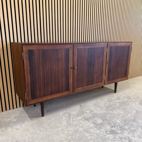 Skænken er produceret i fineret teak, med eftermonteret ben.