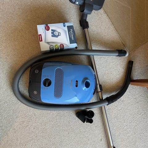 Miele Complete C2 PowerLine rigtig kraftig støvsuger i blå farve. Nye pose , og forskellige mundstykker til rengøring.