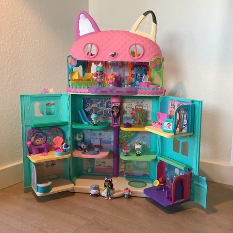 Disney dukkehus legetøj i plastik med farverne lyserød, blå og lilla. Designet som et hus med flere rum og detaljerede vinduer og døre. Egnet til børn til rolleleg og kreativ leg.