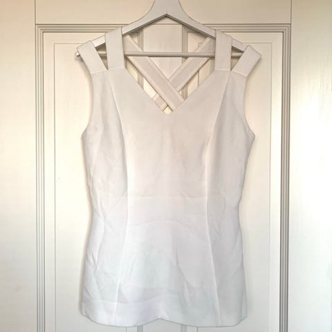 Hugo Boss top i hvid farve, størrelse L. Fremstillet af viskose materiale. Designet til kvinder.