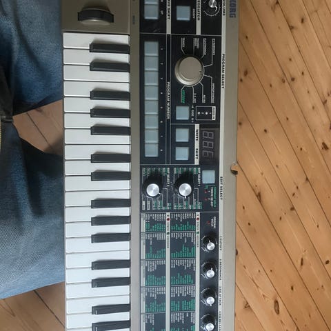 Sælger mit Korg microKORG S med tilhørende flightcase, som passer perfekt. Jeg sælger det, fordi jeg ikke bruger det længere. Det fungerer helt upåklageligt uden fejl eller mangler. Condenser mic til vocoder samt adapter medfølger.