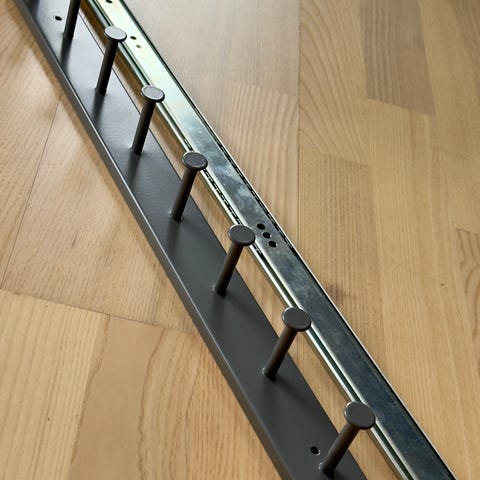 Brugt, men fremstår som helt ny uden ridser mv. Tilhørende skinner og skruer.