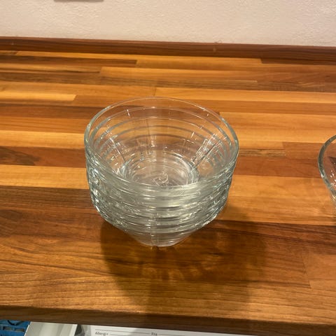 Rosendahl glas skåle i klart glas. Sættet består af flere skåle med en rund form og ribbet ydre design. Velegnet til servering og opbevaring i køkkenet.