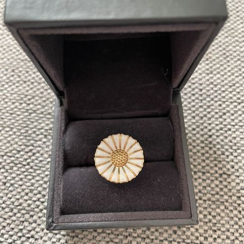 Georg Jensen - Daisy ring m. hvid emalje, 18 mm - Forgyldt sølv. Str. 53.