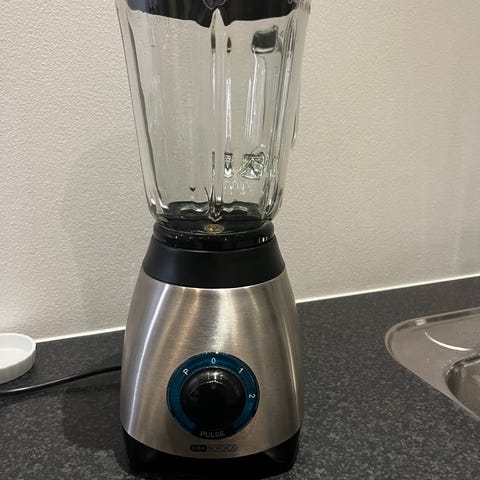 Nordica blender med kande i glas og krop i rustfrit stål. Udstyret med en drejeknap til justering af hastighed. Velegnet til blanding af ingredienser til madlavning og drikkevarer.