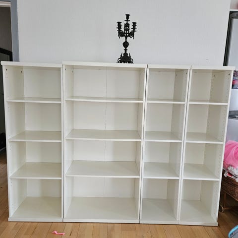 2 hvide reoler på hjul
