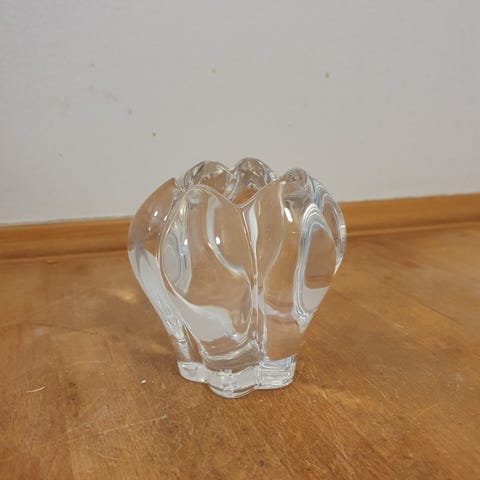 Produktet er en elegant lysestage i blæst glas med en slank, høj stængel og detaljerede former.,Afhentes i:,Røde Kors Glostrup (161),Bemærk at mail, chat og beskeder ikke besvares, og varen skal købes på knappen "Gå til varen"