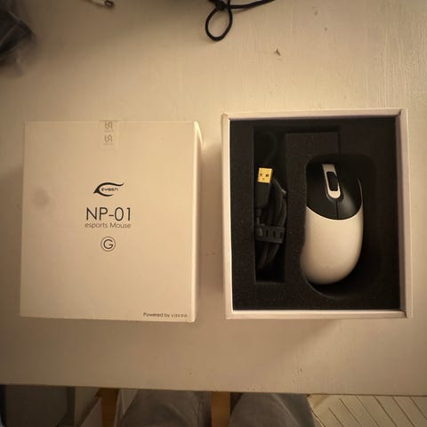 Musen har en glat, hvid overflade med sorte detaljer.,Afhentes i:,Røde Kors Glostrup (161),Bemærk at mail, chat og beskeder ikke besvares, og varen skal købes på knappen "Gå til varen"