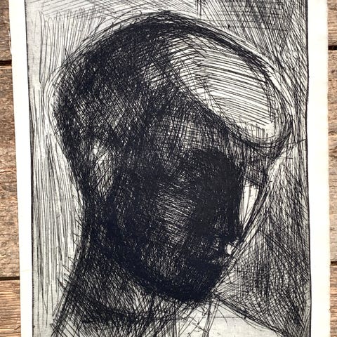Grafisk kunstplakat med ekspressivt udtryk, dateret 1971. Plakaten er et genoptryk og ikke et originalt værk, men repræsenterer den grafiske plakatkunst fra begyndelsen af 1970’erne.