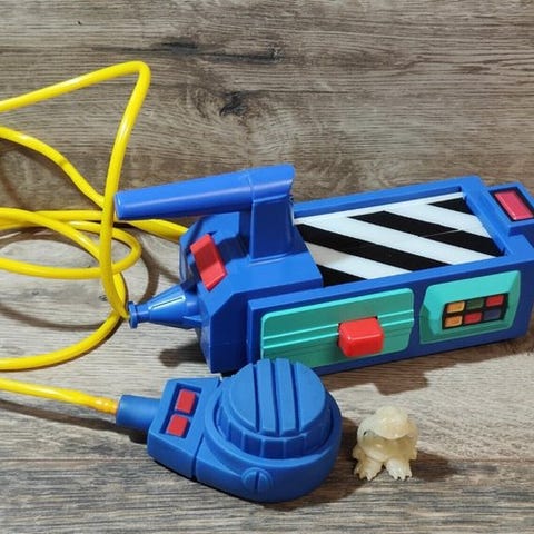 Ghostbusters-legetøjsættet fra 1986 i den originale æske.