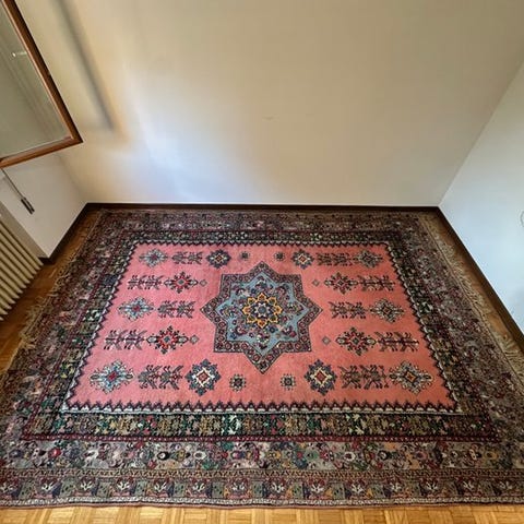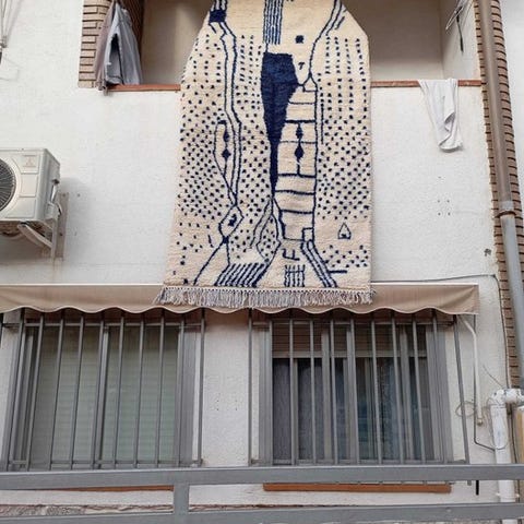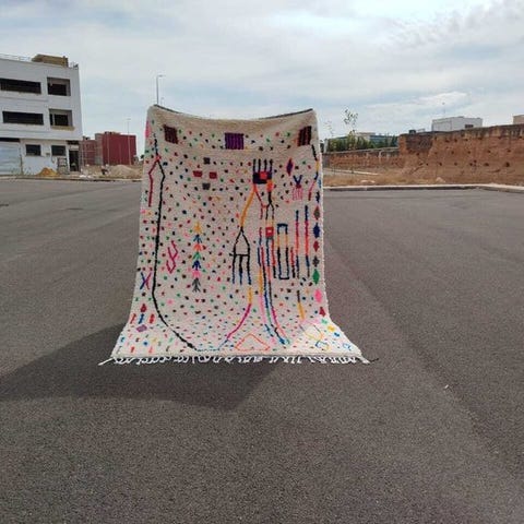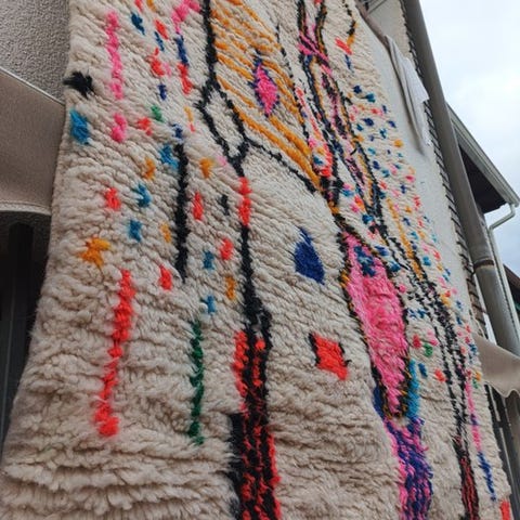 Marokkansk uldteppe, 250 cm x 150 cm, uld på uld, gul, designet af A. A. Patijn, slutningen af det 20. århundrede, 8 kg, i meget god stand og professionelt renset. Klik på den blå "gå til varen" knap, for at købe eller byde på denne vare. Den samlede pris vil blive vist inden du afgiver dit bud.