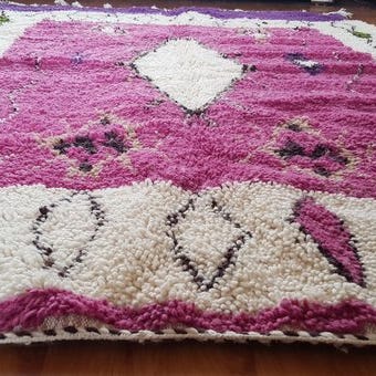 Dette marokkanske tæppe er håndlavet af ren uld og har en dyb løbegangskvalitet.