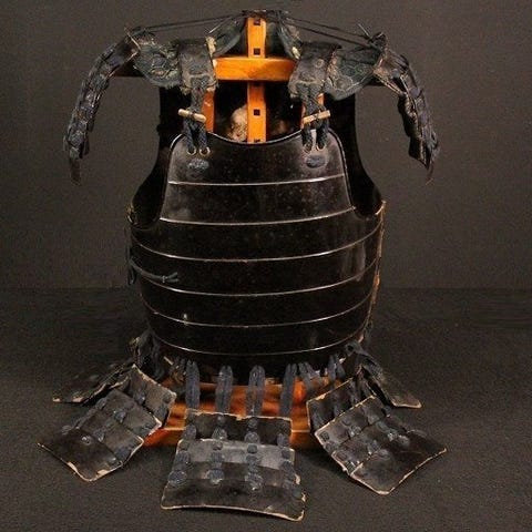 Original kajishozoku brandvehærs-haori fra buke hikeshi, rygmærke med husstandens våbenskjold, bomuld med japansk papirforing, 130 cm bred og 86 cm lang, god stand med manglende foring og skade. Klik på den blå "gå til varen" knap, for at købe eller byde på denne vare. Den samlede pris vil blive vist inden du afgiver dit bud.