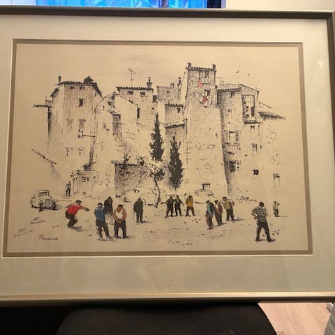 Illustrationen henviser til traditionen i petanque, at en spiller eller et hold, der taber 13-0, skal 'kysse Fannys røv' (la Fanny), en symbolsk figur, der ofte er afbildet på denne måde i klubber og turneringer.