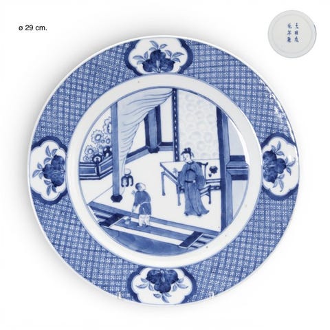 Et enkelt porcelænsskål fra Kangxi-perioden i blå og hvid med dybt ribmønster, fra Kina, diameter 27,7 cm, højde 4,8 cm, med mindre aldersrelaterede tegn og fin craquelé. Klik på den blå "gå til varen" knap, for at købe eller byde på denne vare. Den samlede pris vil blive vist inden du afgiver dit bud.